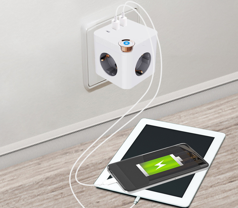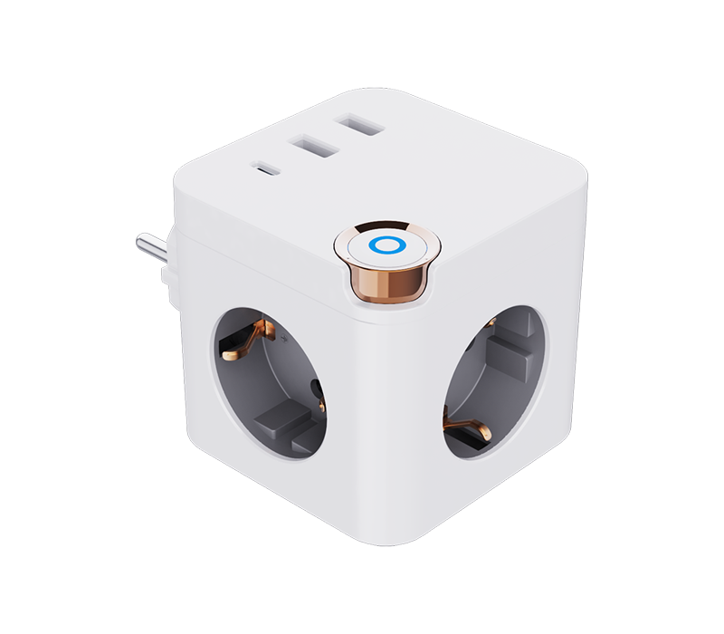 Home / Products / Electrical Accessories / Power Strip / E19 Plug-In Cube Power Strip With 3 European-Style Outlets, 2 USB-A Ports, And 1 USB-C Port, With Switch