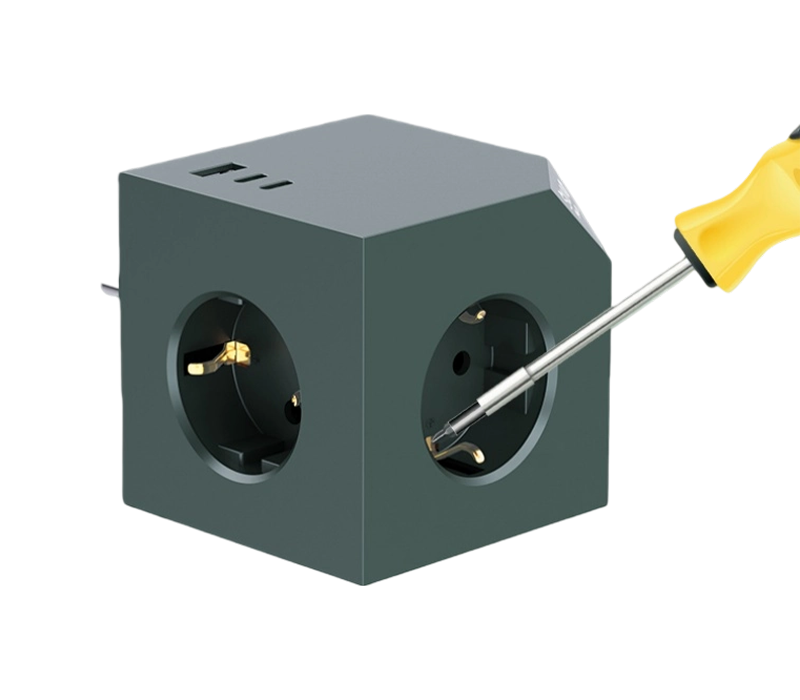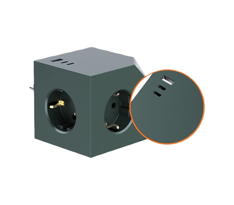 Plug-in cube power strip with three European outlets, one USB-A port, and two USB-C ports. This plug-in cube power strip is distinguished by its innovative interface combination. Featuring three European sockets, one USB-A port, and two USB-C ports, it caters to diverse charging needs. The flame-retardant PC material ensures safe operation. Compact in size for portability and easy storage. Rated at 230V voltage, 16A current, and capable of delivering up to 3680W, it provides stable and reliable power. The USB outputs support PD 20W fast charging, suitable for devices supporting quick charge. Whether for everyday household use or travel, this power strip delivers an excellent charging experience, quickly revitalizing your devices.