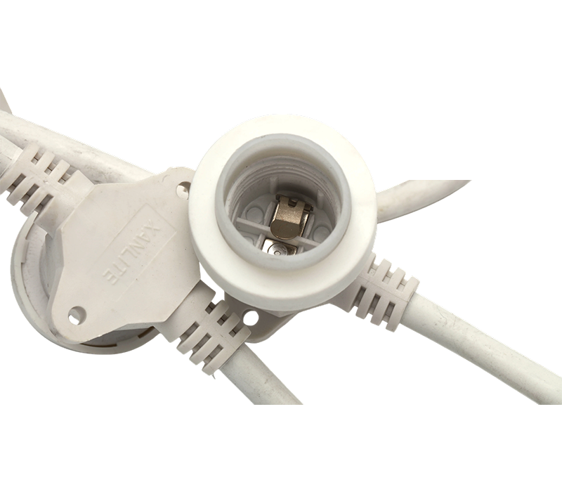 White LED light string with waterproof connectors. This string boasts waterproof connectors, allowing reliable operation in humid or wet environments, greatly broadening its application scope. The pure white LEDs emit a bright, clean glow, creating a minimalist, fresh ambiance. Perfect for outdoor garden lighting at night or indoor holiday decor, such as weddings, to evoke a pure, romantic atmosphere. An excellent decorative lighting choice for enhancing outdoor aesthetics or creating memorable indoor event settings.